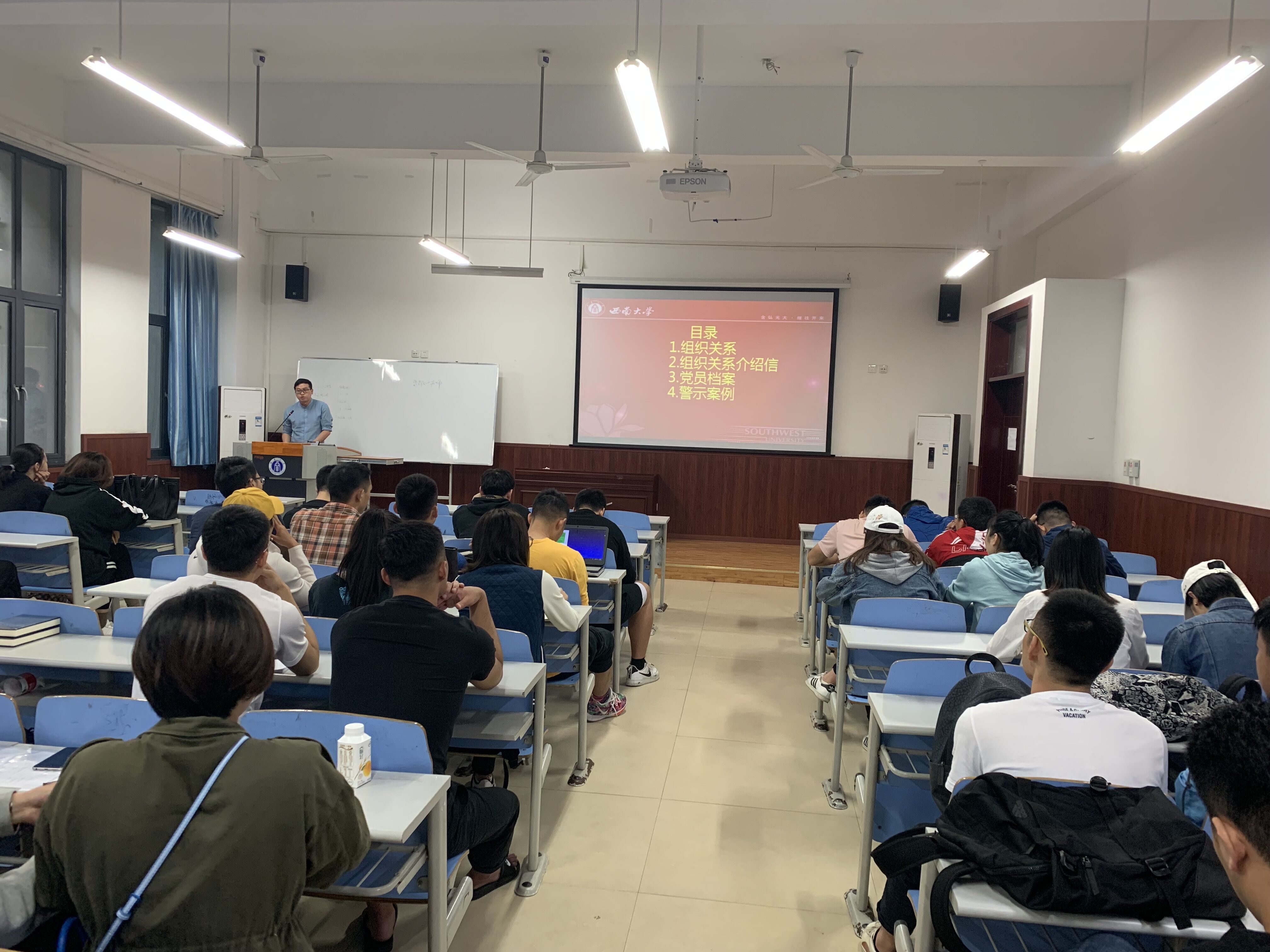李进老师从党组织关系转接的意义,党员组织关系转接的要求、流程、注意事项,党员组织关系介绍信和重庆市12371系统操作,常见特殊事项的处理、因组织关系转接不及时被取消预备党员资格警示案例等五个方面进行了详细的讲解,系统全面的讲解了组织关系转接的基本流程、重要环节和时间节点。同时还就毕业生党员档案材料清理、临近毕业期间转正、出国留学等具体情况进行了提醒说明。希望毕业生党员牢记党员身份,提升重视程度,主动保持沟通,及时完成转接,并祝愿毕业生党员在新的岗位保持优良作风,前程似锦。