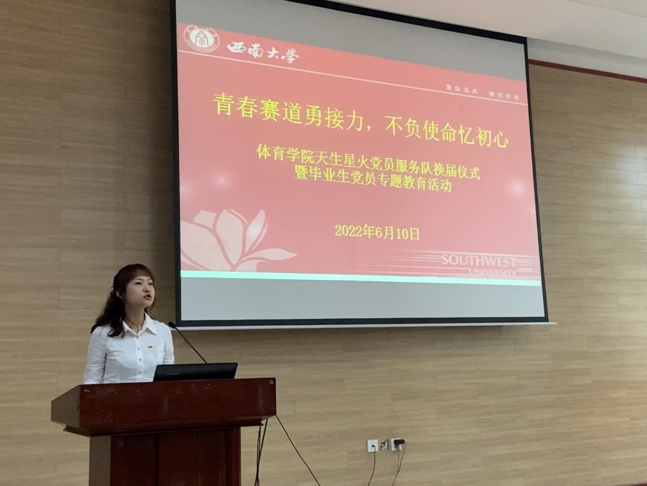 2022年6月10日下午15:30,必赢线路检测中心天生星火党员服务队换届仪式暨毕业生党员专题教育活动在必赢线路检测中心109报告厅举行。学院党委委员、党支部书记、全体学生党员和全体毕业生党员参与此次会议,学院党委副书记、纪委书记张剑兰担任主持人