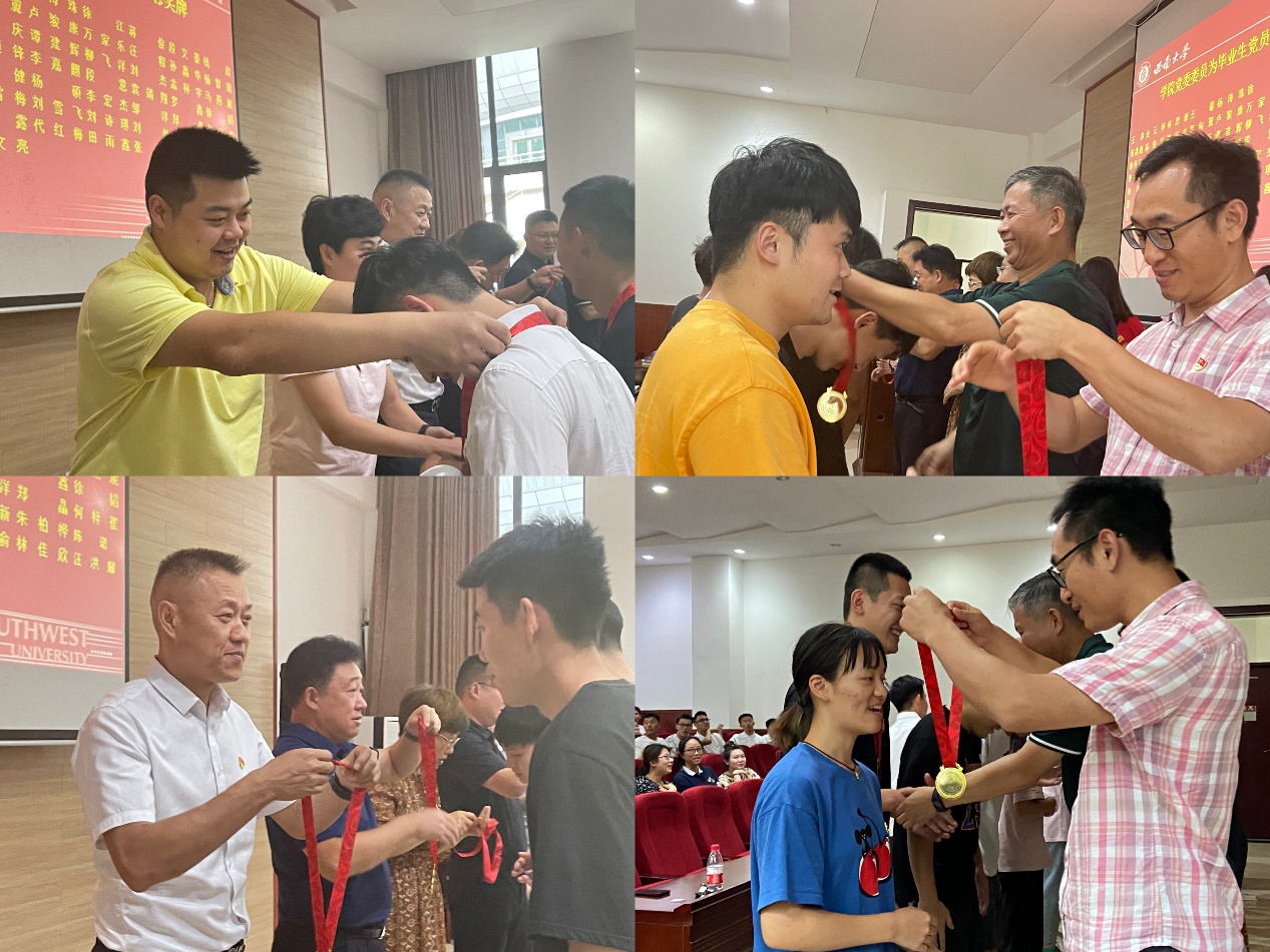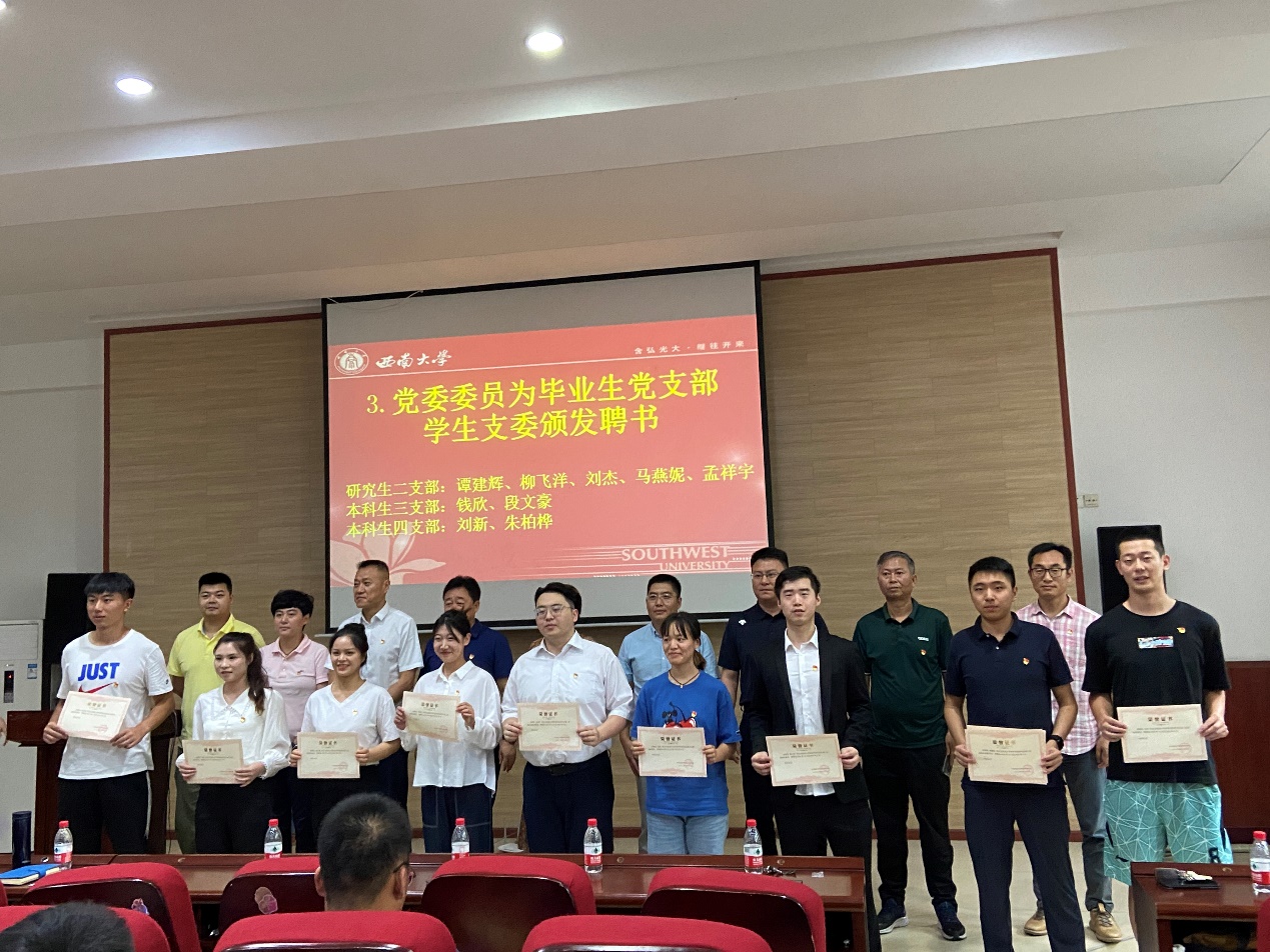 刘杰同志发言结束后,必赢线路检测中心党委委员为毕业生党支部学生支委颁发聘书,并向全体毕业生党员赠送纪念奖牌。
