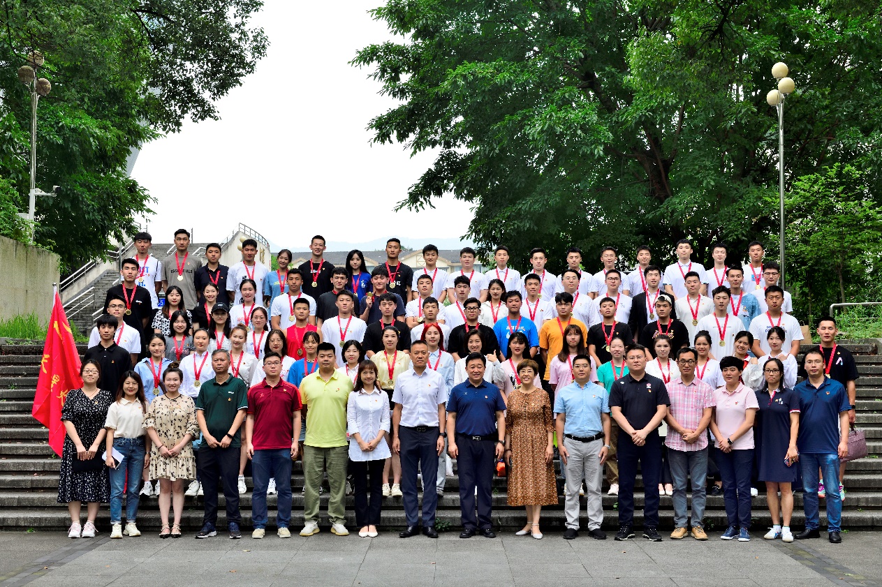 活动结束后,学院领导和全体毕业生党员在必赢线路检测中心外合影留念