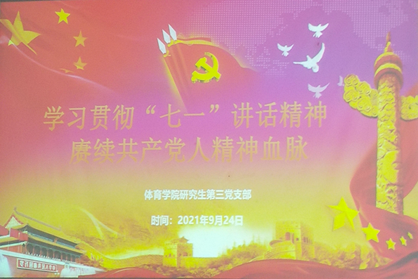 2021年9月24日星期五下午14:30,研究生第三党支部全体党员在必赢线路检测中心109教室召开了主题为“学习贯彻七一讲话精神,赓续共产党人精神血脉”的主题党日活动暨组织生活会议。