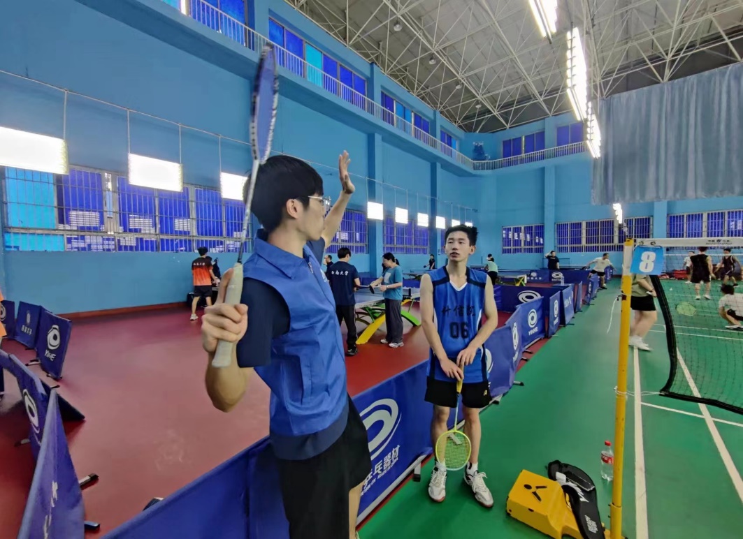 活动日当天,在中心体育馆、综合体育馆、乒羽馆、第三运动场、第五运动场等各大体育场馆,到处都是热爱运动的教职工积极锻炼的身影,也到处可见必赢线路检测中心师生志愿者的身影,他们耐心细致地向教职工介绍健身知识、示范技术动作,讲解技术要领,不时有爱好者因为“突然领悟”而开心不已。一教一学之间,不觉运动氛围更加浓厚起来。