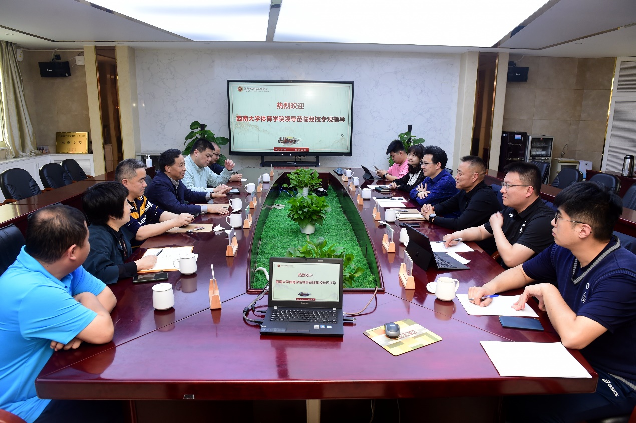 9日,学院一行首先去到深圳市体育运动学校,参观学校训练、教学场馆,并与该校党委副书记、纪委书记、副校长翟贵奇,副校长李伟、张鑫瑞及德育部、教学部、训练部(反兴奋剂部)、总务部(建设办)等部门负责人进行座谈,双方就高水平后备人才培养作了专题研讨,并就中专到大学的衔接、毕业生就业、人才培养和服务社会等方面的合作进行了交流。