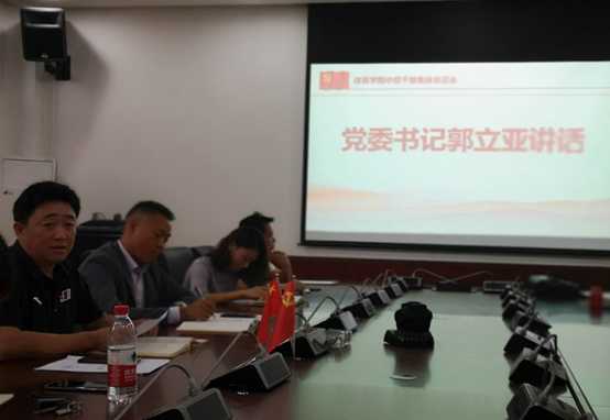 党委书记郭立亚用习近平总书记“信念坚定、为民服务、勤政务实、敢于担当、清正廉洁”的好干部标准,希望全体中层干部能够要有担当的宽肩膀,还得有成事的真本领。既要大胆讲政治,又要善于讲政治;既要矢志抓发展,又要善于抓展;既要勇于抓改革,又要善于抓改革;既要敢于直面矛盾和问题,又要善于化解矛盾和问题;既要有想干事、真干事的自觉,又要有会干事、干成事的本领。必须做到政治过硬、责任过硬、能力过硬、作风过硬,要加强道德修养,带头弘扬社会主义核心价值观,明辨是非善恶,追求健康情趣,不断向廉洁自律的高标准看齐,做到心有所戒、行有所止,守住底线,并结合学院具体工作和案例进行说明。同时就干部考核的原则、方式和重点进行了说明,对大家提出希望。