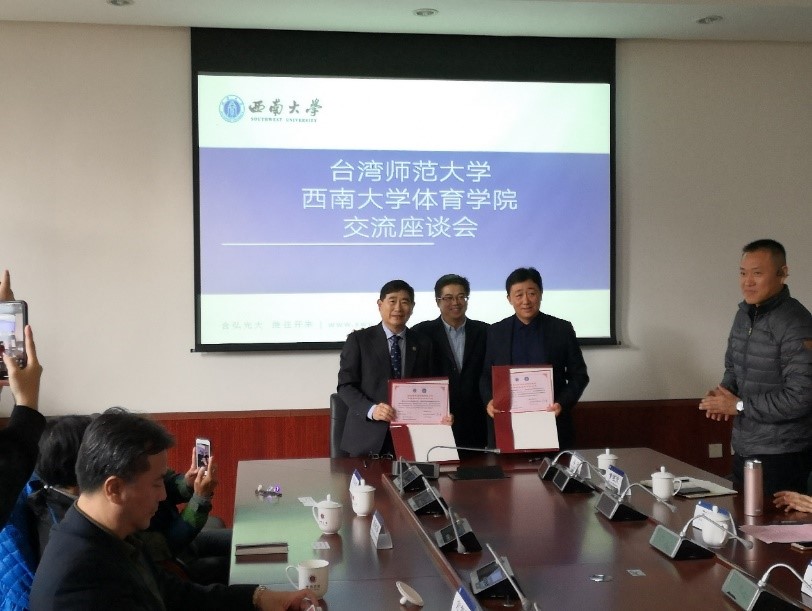 张发钧主任对台湾师范大学运动与休闲学院的领导,老师和同学们的到访表示热烈的欢迎。张主任指出,台湾师范大学是台湾地区非常知名的高校,西南大学的教育学科(包括体育学科)在大陆也久负盛名,希望两校间从学生间到教师间,就共同感兴趣的科学研究,体育运动训练方面加强相互了解与合作。也非常欢迎台湾的优秀本科生和研究生到西南大学学习。