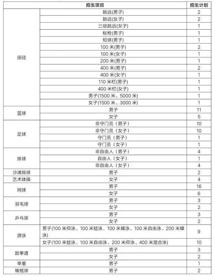 2019年运动训练专业计划招收130人,各项目招生计划详见下表。优秀运动员免试入学录取到运动训练专业按照《西南大学2019年优秀运动员免试入学招生简章》执行,高水平运动队招生录取到运动训练专业按照《西南大学2019年高水平运动队招生简章》执行,均不占下表中的招生计划数。