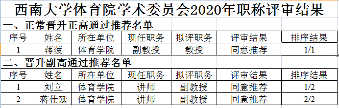根据《西南大学关于开展2020年专业技术职务申报工作的通知》和《关于2020年专业技术职务学术评审阶段有关事宜的通知》要求,经个人申报、学校审查、学院学术委员会推荐评审等程序,现将必赢线路检测中心学术委员会2020年职称评审结果公示如下: