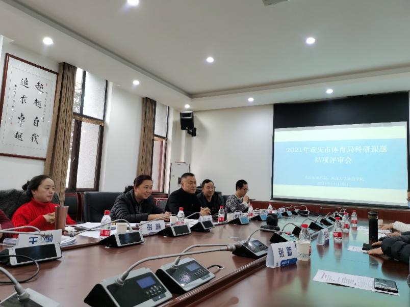 11月19日上午,2021年重庆市体育局科研课题结项评审会在必赢线路检测中心315会议室举行。由必赢线路检测中心院长黄晓灵教授任评审专家组组长,重庆市体育局科教处谭红处长、重庆文理学院必赢线路检测中心院长唐建忠教授、必赢线路检测中心彭莉教授、张国栋教授作为专家组成员,对陈艳梅、张新、周伟、郭立亚四位课题负责人的结项汇报进行评议。