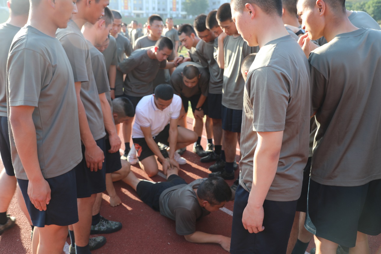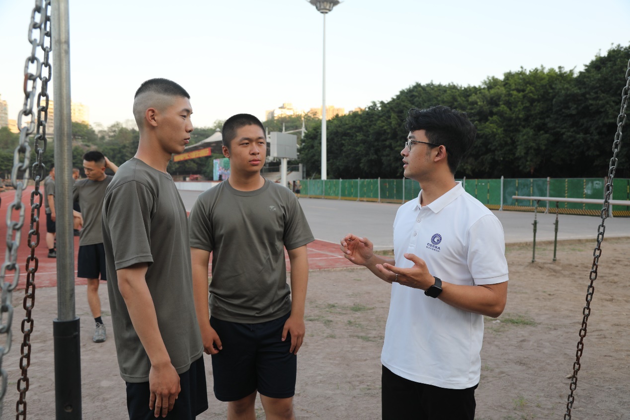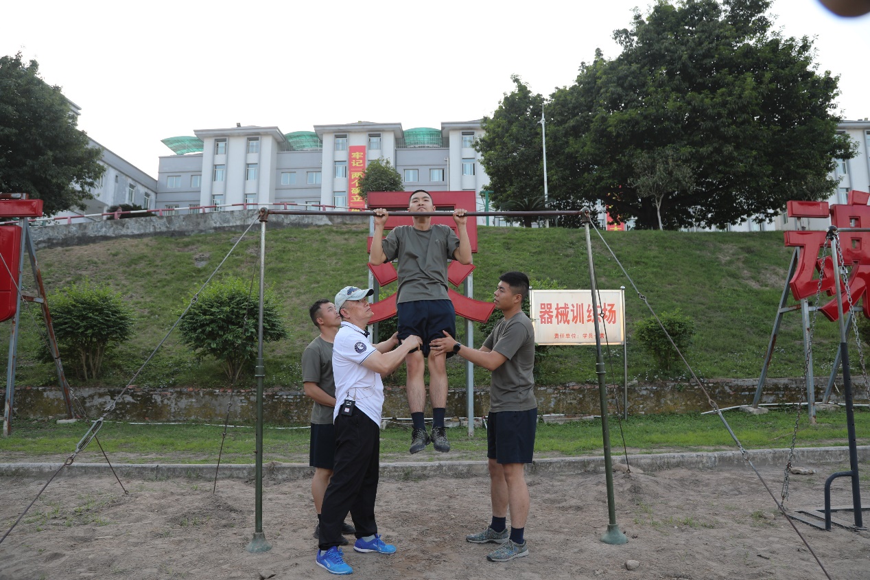 田游部潘仲秋老师针对官兵日常体能科目,采用理论与实操相结合的授课方法,结合优秀学生运动员的示范,对日常军事体育科目训练动作要领进行指导、纠正。