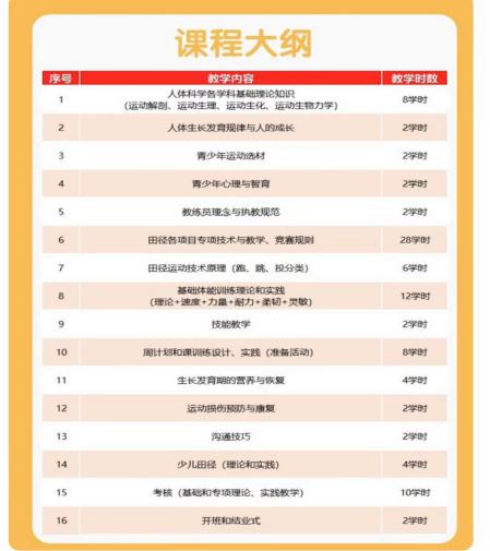 D级田径教练员培训共11天(5天线上理论,6天线下实践,共计88学时)。